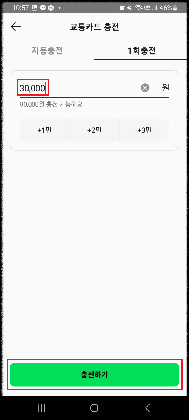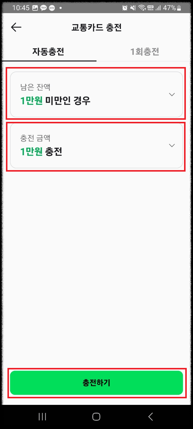 3-1. 자동충전을 선택하여 남은 잔액과 충전 금액을 선택할 수 있습니다.