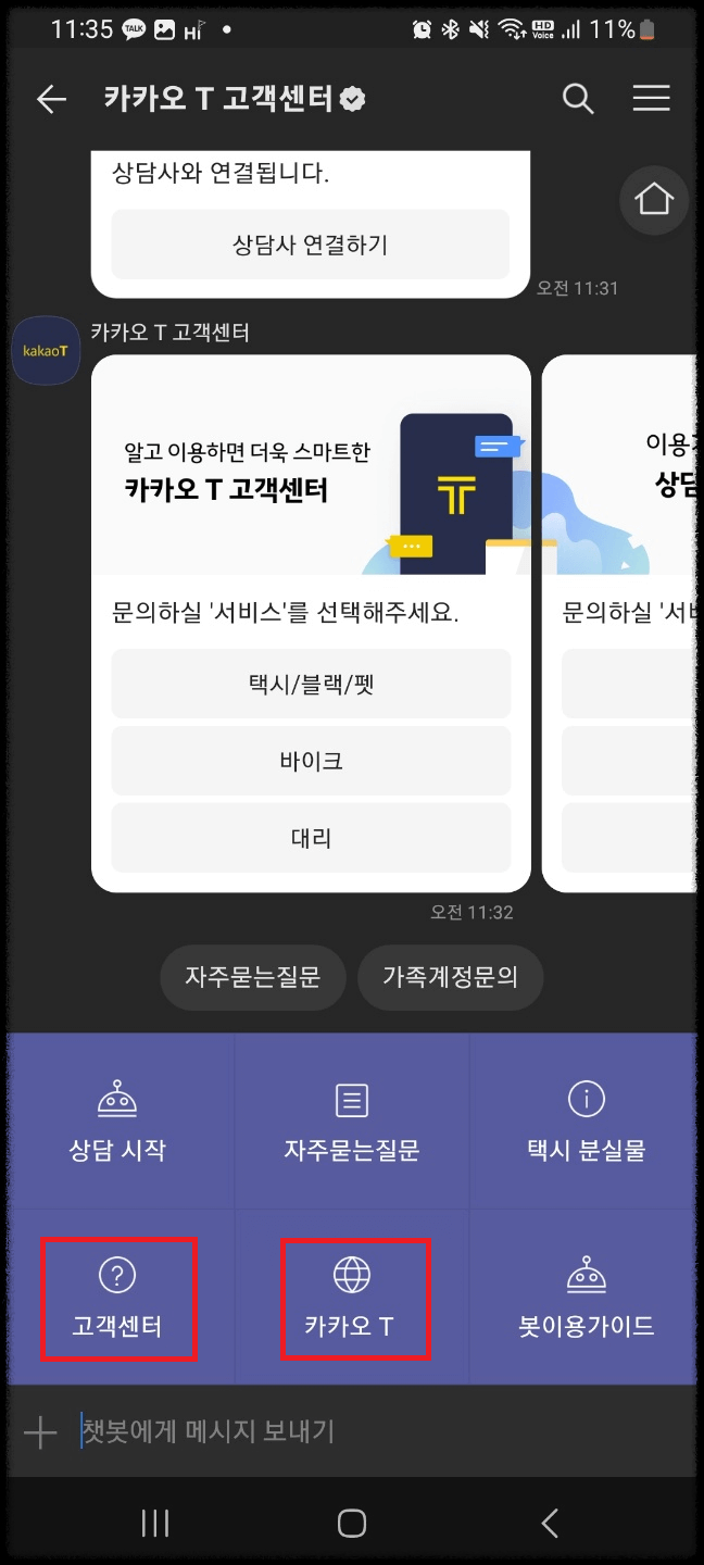 - 문의처 : 카카오T 고객지원 → 하단 '카카오T 고객센터' 또는 '카카오T 앱'으로 바로가기
